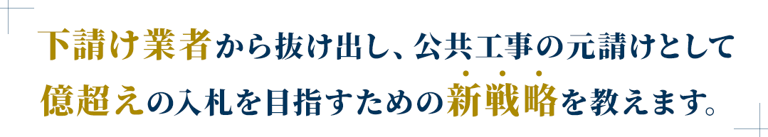 ゼロから永続的に 公共工事を受注し、安定経営を実現する仕組みをお伝えします。