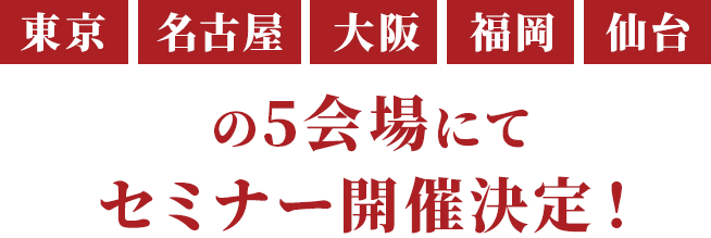 東京・名古屋・大阪・福岡・仙台での